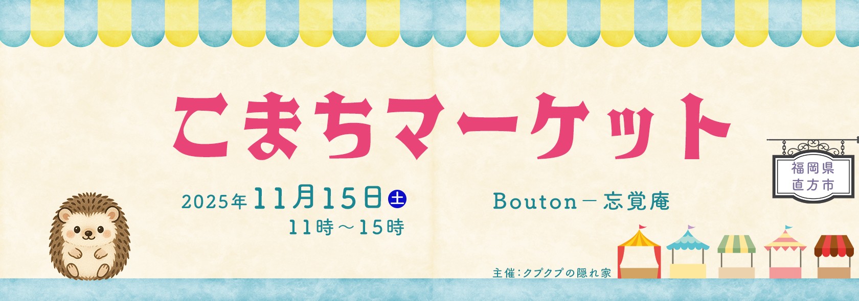 なお現在は、Boutonー忘覚庵さまのレンタルスペースをお借りして、直方市のマルシェ こまちマーケットを開催しています。